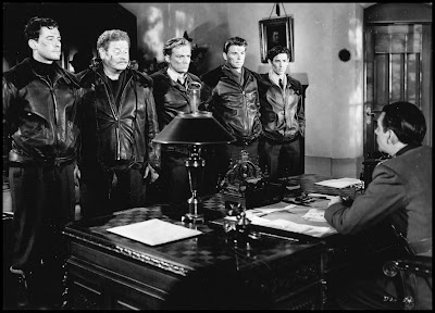 Flynn, Alan Hale (look at the expression on his face!), Arthur Kennedy, Rondald Reagan and Ronald Sinclair in a scene from the silly and fun over-the-top war time film "Desperate Journey"